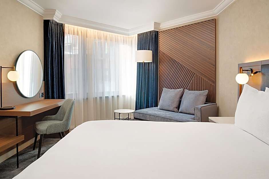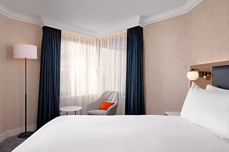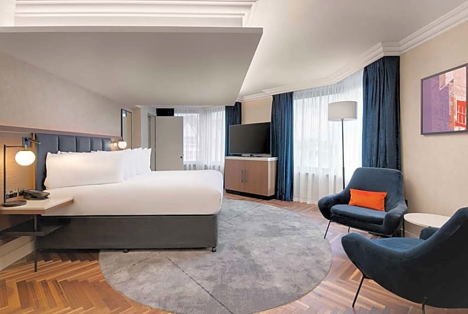 Stylish room with a king-size bed decorated in cool, calm tones. Features complimentary Executive Lounge access. Includes high-speed internet access (fee applies), an ergonomic chair, easy chair, and a marble bathroom.